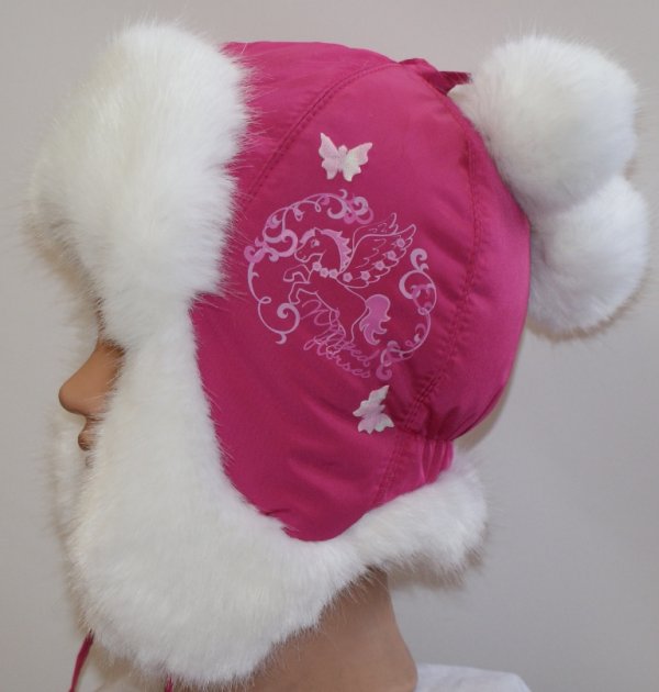 Шапка для девочки из плащевой ткани с отделкой из искусственного меха,с утеплителем из синтепона, на трикотажной подкладке из хлопка (кулирка)